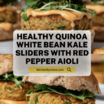 These Quinoa White Bean Kale Sliders are a delicious, wholesome option for a vegetarian meal. Paired with a creamy roasted red pepper aioli, they make a perfect bite-sized treat that’s both flavorful and nutritious.