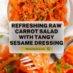 A fresh and vibrant Raw Carrot Salad featuring thin carrot ribbons tossed in a tangy and slightly sweet dressing made with sesame oil, rice wine vinegar, soy sauce, honey, and lime juice. Topped with toasted sesame seeds and chopped green onions, this salad is a perfect light, healthy side dish that can be enjoyed immediately or chilled to deepen the flavors.