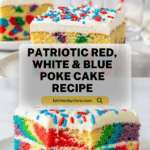 This vibrant Red, White, & Blue Poke Cake is a festive dessert featuring a moist white cake with alternating red and blue jello-filled pockets. Topped with a sweet whipped topping and colorful sprinkles, it’s perfect for patriotic celebrations or anytime you want a fun, colorful treat.