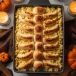 - Step 9: Bake uncovered for 20–25 minutes, until crescent strips are golden and cooked through.