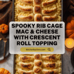 Rib Cage Mac & Cheese (Crescent Bone Edition) is a creative twist on classic macaroni and cheese, topped with crescent roll dough shaped like rib bones for a fun and visually striking presentation. This baked pasta dish combines creamy cheddar cheese sauce with perfectly cooked macaroni, and golden, flaky pastry ribs, making it an ideal centerpiece for festive occasions or themed dinners.