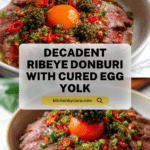 This Ribeye Donburi is a luxurious twist on a classic Japanese rice bowl, featuring tender, perfectly seared ribeye steak topped with a rich cured egg yolk and flavorful sauce. It’s a comforting yet elegant dish that’s surprisingly simple to prepare at home.