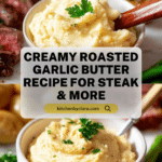 This roasted garlic butter is a rich and flavorful condiment that elevates any dish, from steak to steamed vegetables. Made with slow-roasted garlic, parmesan, and a hint of anchovy paste, it’s creamy, savory, and irresistibly delicious. Perfect for adding a gourmet touch to simple meals.