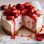 This Roasted Strawberry Cheesecake combines the rich, creamy texture of classic cheesecake with the deep, intensified sweetness of oven-roasted strawberries. Featuring a buttery graham cracker crust, luscious strawberry-infused cheesecake filling, and a delicate whipped cream topping paired with roasted strawberries, this dessert is perfect for special occasions or indulgent treats. The roasting process enhances the natural flavors of the strawberries, making this cheesecake uniquely flavorful and irresistibly creamy.