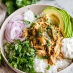 - Serve: Serve the salsa verde chicken as desired—great for tacos, burritos, bowls, or alongside rice and beans.