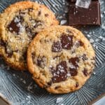 Keywords: Salted chocolate chunk shortbread cookies, chocolate chunk cookies, shortbread cookies, easy cookie recipe, chocolate chip shortbread
