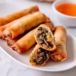 - Serve: Enjoy the spring rolls hot with Chinese black vinegar or your choice of dipping sauce.