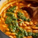 This Simple Bean Soup from El Bulli, the world-renowned restaurant, is a comforting and flavorful dish featuring cannellini beans simmered with aromatic herbs, tomato passata, and vegetable stock. Enhanced with a homemade hazelnut picada, this rustic soup boasts deep golden onion sweetness and a creamy texture achieved by blending a portion of the soup. Perfect served with crusty bread, this vegan and wholesome soup makes an ideal meal for any occasion.