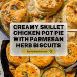 This Skillet Chicken Pot Pie with Parmesan Herb Butter Biscuits is a comforting, hearty meal perfect for cozy nights. It combines tender shredded chicken and vegetables in a creamy sauce, topped with flaky, flavorful biscuits that bake right on top. Easy to prepare and full of rich flavors, it’s sure to become a family favorite.