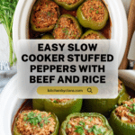 Delicious slow cooker stuffed peppers filled with a savory mix of ground beef, cooked rice, and aromatic herbs, all simmered in rich marinara sauce. This easy and comforting meal is perfect for hands-off cooking and results in tender peppers bursting with flavor.