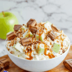 Store Snicker Salad in an airtight container in the refrigerator for up to 2 days. It’s best eaten fresh as the apples may soften and the Snickers can lose some texture over time. If needed, give it a gentle stir before serving.