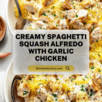Keywords: spaghetti squash alfredo, low-carb alfredo, baked chicken alfredo, healthy alfredo recipe, roasted spaghetti squash