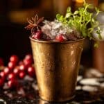 This Spiced Cranberry Thyme Moscow Mule is a festive twist on the classic cocktail, featuring a homemade spiced cranberry syrup infused with fresh thyme, ginger, and cardamom. Balanced with vodka, lime, and pomegranate juice, then topped with refreshing ginger beer, this drink offers a perfect blend of tartness and warmth, ideal for holiday gatherings or cozy evenings.