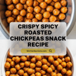 Crispy and flavorful spicy roasted chickpeas make a perfect crunchy snack or salad topping. Coated with a blend of paprika, garlic, onion, and cayenne powder, these roasted chickpeas are easy to prepare and packed with protein and fiber.