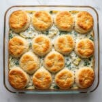 - Assemble in Baking Dish: Transfer the biscuit and spinach-artichoke mixture into the greased baking dish. Evenly spread it out and then sprinkle the remaining mozzarella cheese on top for a cheesy crust.