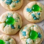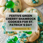 Celebrate St. Patrick’s Day with these festive Green Cherry Shamrock Cookies. Soft, buttery, and studded with white chocolate and green sprinkles, each cookie is topped with vibrant green candied cherries arranged like shamrocks for a charming holiday treat.