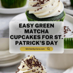 Keywords: St. Patrick’s Day cupcakes, green cupcakes, matcha cupcakes, vanilla buttercream, festive cupcakes, holiday desserts