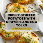 Keywords: stuffed potatoes, baked potatoes, Gruyère cheese, brown butter, creamy potato filling, egg yolk stuffed potatoes