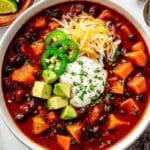 A hearty and flavorful Sweet Potato Chili featuring tender sweet potatoes, black beans, and a medley of spices simmered to perfection. This vegetarian chili is a comforting meal perfect for cozy evenings and packed with nutritious ingredients.