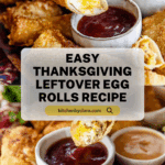 A delicious and creative way to use Thanksgiving leftovers by turning turkey, mashed potatoes, stuffing, ham, sweet potatoes, and cranberry sauce into crispy, golden egg rolls. These flavorful treats are perfect for dipping in turkey gravy or cranberry sauce, making an irresistible appetizer or snack.
