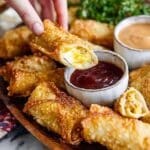 Keywords: Thanksgiving leftovers, egg rolls, turkey egg rolls, holiday appetizer, leftover recipes, crispy egg rolls, turkey gravy dip, cranberry sauce dip