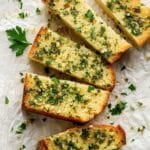 - Garnish and Serve: Remove the garlic bread from the oven, garnish with extra fresh parsley and chives for a fresh aroma and appealing presentation. Slice and serve warm.