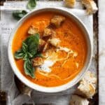 Keywords: homemade tomato soup, roasted tomato soup, easy tomato soup recipe, vegetarian soup, comfort food