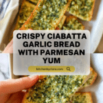 This Ultimate Ciabatta Garlic Bread recipe is a deliciously crispy, buttery, and garlicky treat made with fresh ciabatta bread, rich butter, minced garlic, fresh parsley, and parmesan cheese. Perfect as a side dish or appetizer, it’s baked to golden perfection ensuring a wonderfully melted and flavorful bite every time.