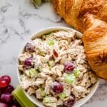 Store the chicken salad in an airtight container in the refrigerator for up to 3 days. Give it a good stir before serving, as the dressing may thicken or separate slightly. It’s best enjoyed cold or at room temperature, so avoid reheating.
