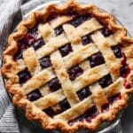 Keywords: triple berry pie, berry pie, homemade pie crust, lattice crust, blueberry raspberry blackberry dessert, summer pie
