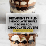 This Triple-Chocolate Trifle is a decadent dessert that layers rich chocolate mousse, tahini whipped cream, and chocolate cake with crunchy cookie bits. It’s perfect for chocolate lovers looking to impress with a show-stopping treat that’s surprisingly easy to assemble.