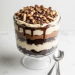 This Triple-Chocolate Trifle is a decadent dessert that layers rich chocolate mousse, tahini whipped cream, and chocolate cake with crunchy cookie bits. It’s perfect for chocolate lovers looking to impress with a show-stopping treat that’s surprisingly easy to assemble.