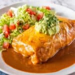 Wet burritos pair well with simple sides like Mexican rice, a fresh green salad, or guacamole. Sour cream and sliced jalapeños also make great toppings.
