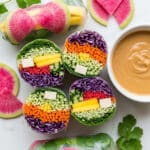 This vibrant Winter Vegetable Salad Rolls recipe features roasted delicata squash, fresh tofu, and a colorful mix of crunchy raw vegetables all wrapped in delicate rice paper. Served with savory peanut sauce, these salad rolls offer a light, refreshing, and nutritious meal or appetizer perfect for colder months when winter squash is at its peak.