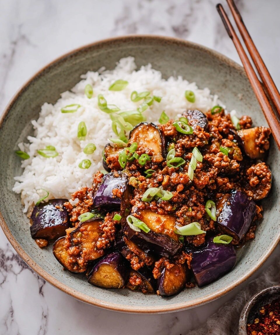 Yu Xiang Eggplant is a traditional Sichuan dish featuring tender, bite-sized pieces of eggplant cooked in a flavorful sauce made with soy, vinegar, garlic, ginger, and chili paste. This recipe combines savory, sweet, sour, and spicy elements with ground pork for added richness, making it a perfect main or side dish packed with authentic Chinese flavors.